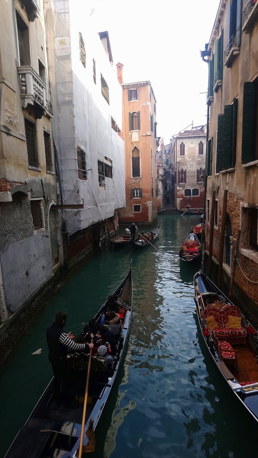 超酷的,這裡沒有車子,所有的生活都以船為主,兩旁佇立在水中的房子,都是精雕細硺過,羅馬式的拱門,威尼斯式幾何圖形花窗,超美的,很難想像這邊是潟湖,一個地理條件不好的地方,卻有著華麗的建築,不得不提到威尼斯商人,中世紀威尼斯是個富裕地區,貿易中繼站,也因為地理位置的關係,相較其他地方,建築工法不同,除了義大利羅馬式、哥德式外,也受東方、拜占庭以及西班牙摩爾人阿拉伯文化影響。而且這裡的房子無法蓋太大,因此更著重於細緻華麗。